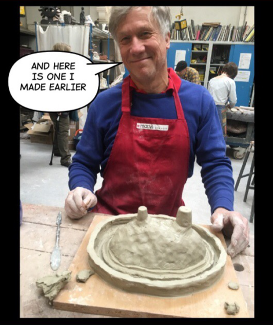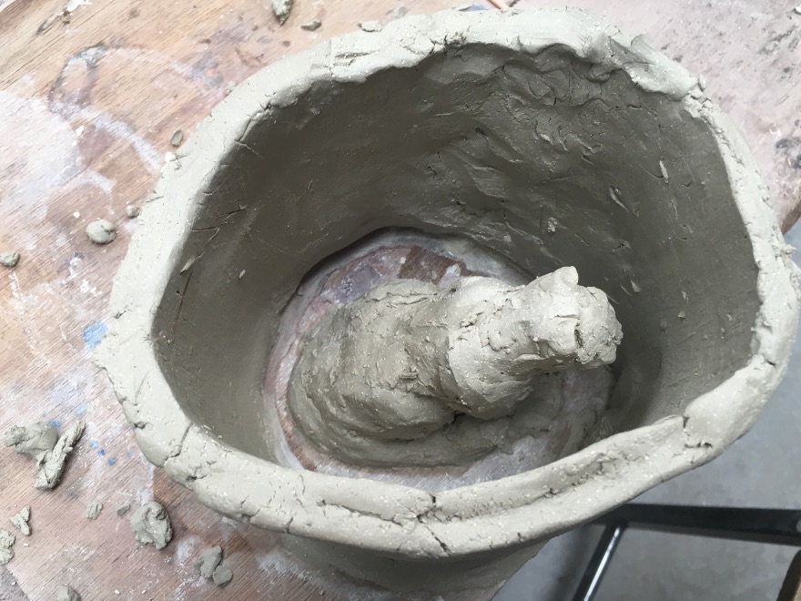 This is as far as I got on the first day of the course. The ‘Let Me Out!’ figure is well and truly trapped in clay!