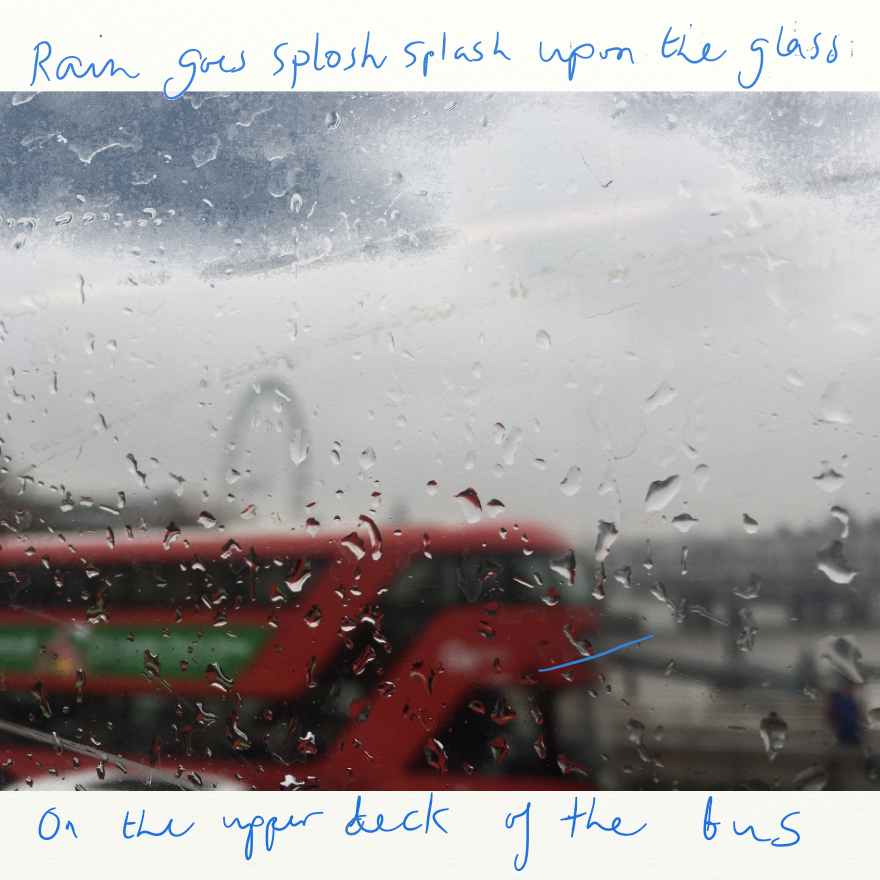 On a rainy morning I’m travelling on the top deck of a number 4 bus to Waterloo.