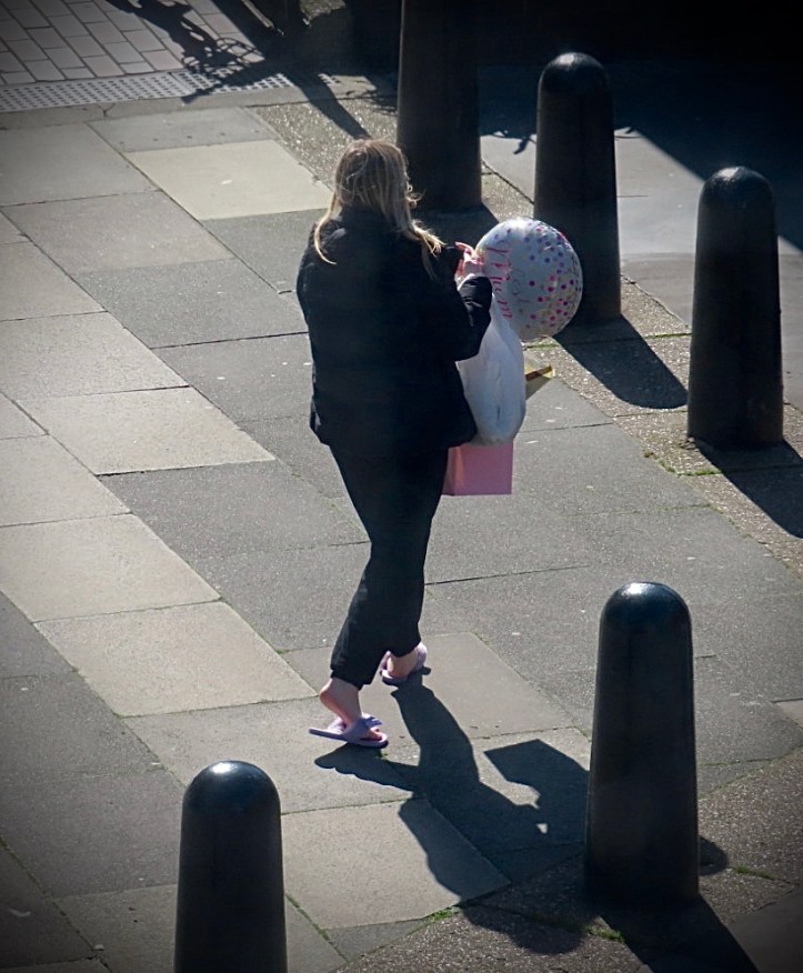 I captured this lone gentleman taking a gentle brave stroll beneath my window (I hope he doesn’t venture too close to the chap on his mobile).