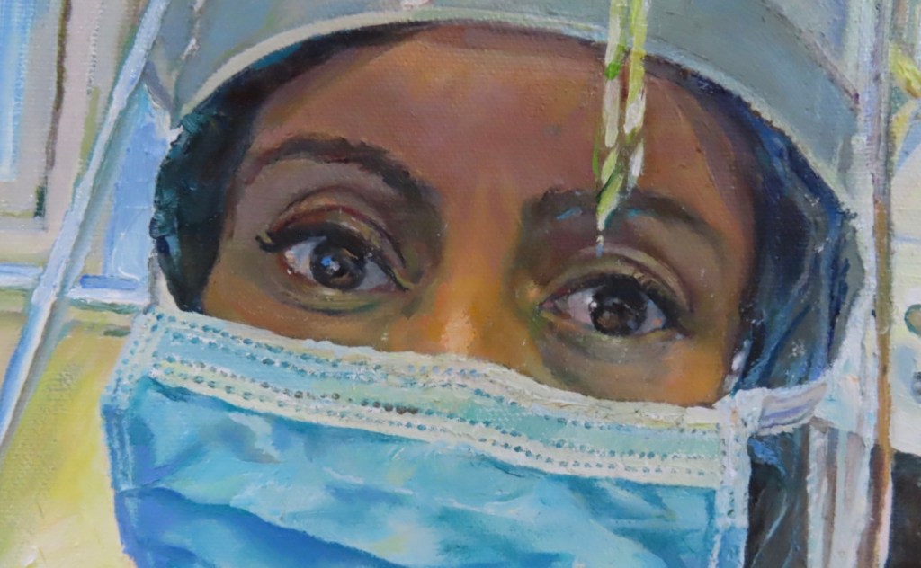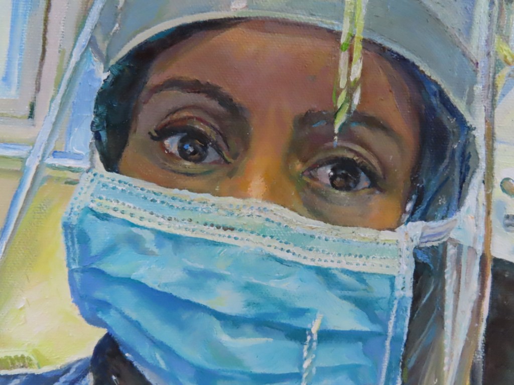 NHS heroine Dr Rukhsana Salim, clinical lead and mother of two beautiful daughters, is the subject of my portrait in oils on canvas – size 12 in x 16 in (30 cm x 40 cm).