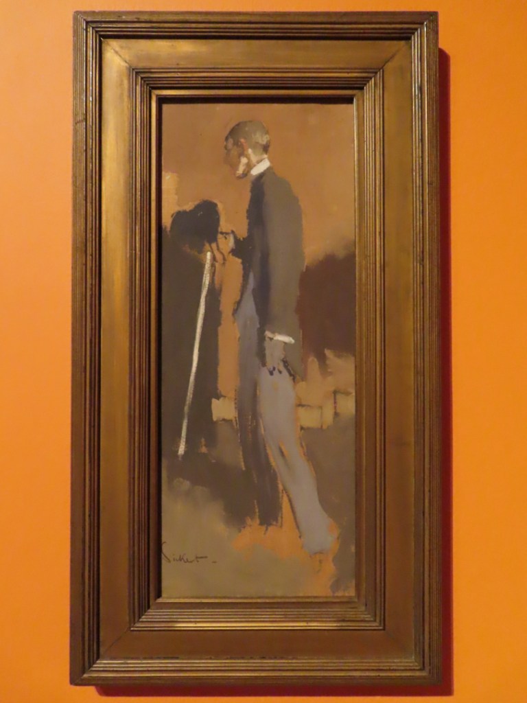 Walter Sickert’s painting of Aubrey Beardsley is on display in a room painted in the ‘decadent orange’ that he loved and was the colour scheme for the house he and his sister Mabel briefly owned in Pimlico in 1894.