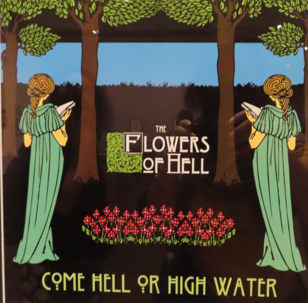 The unique unmistakable art of Aubrey Beardsley has influenced art and design in so many ways, inspiring artists in his own short lifetime right up to the present time. Consequently he is one of the most copied artists in the illustrative world. Greg Jarvis’s artwork for the cover for the Flowers of Hell Album 2009 ‘Come Hell or High Water’ is just one example.