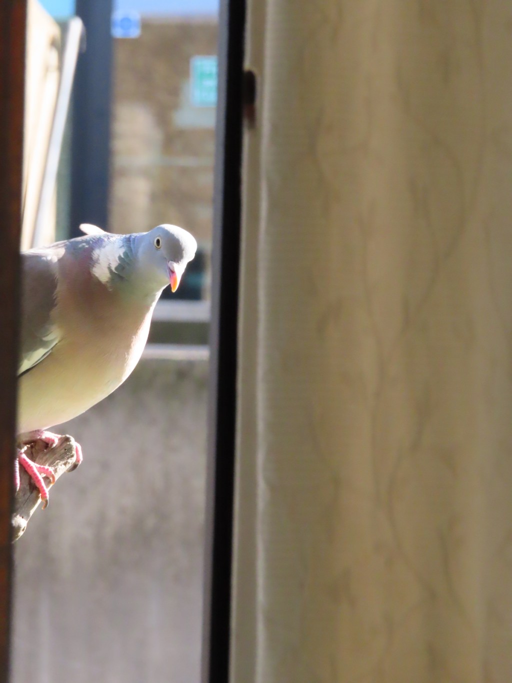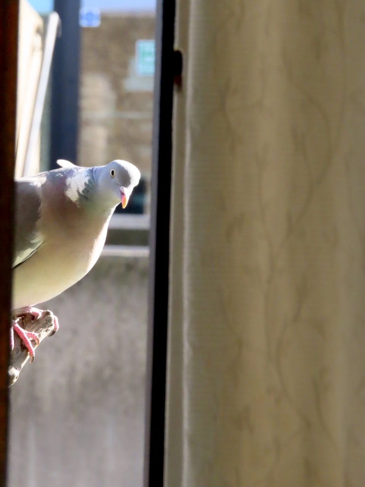 During Lockdown I took to feeding the birds on our balcony. It is fun identifying all the individual characters of the birds that come to lunch. One regular is a local wood pigeon who lives in a tree opposite and coos a lot when the table is empty. But today, he has told me off for staying indoors!