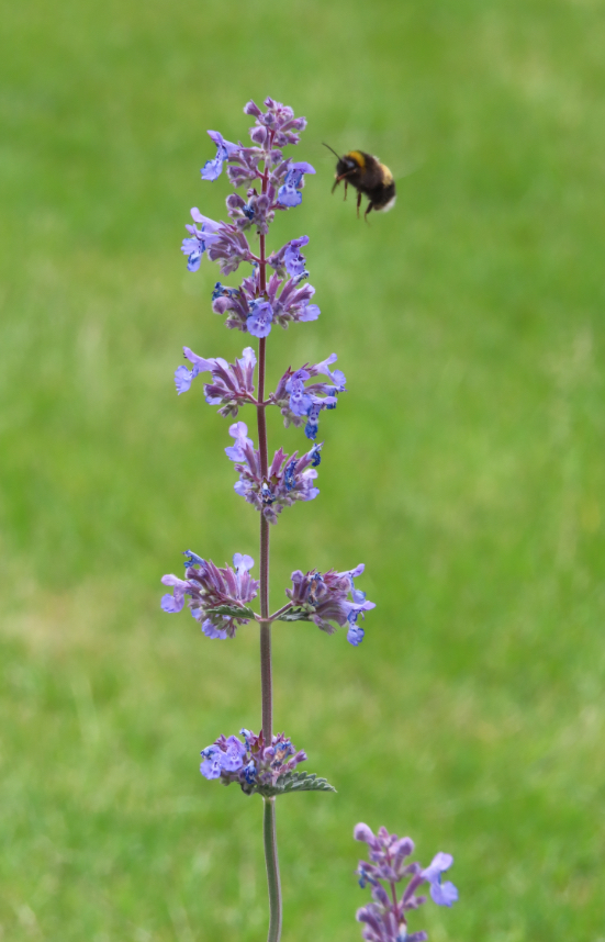 This is not a solitary—but he’s on his own in my photo! The flower is Catmint (Nepeta faassenil).