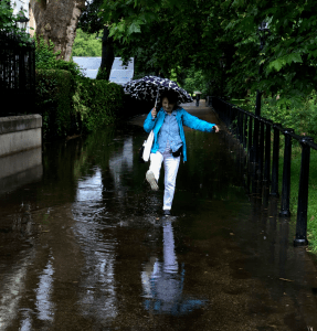 The last time it rained, I got caught in a downpour in St. James’s Park. I shot the footage (or, as it is only 1 minute duration, perhaps I should say inchage?) for my minute movie RAIN IN THE PARK in the pouring rain walking through the park getting drenched!