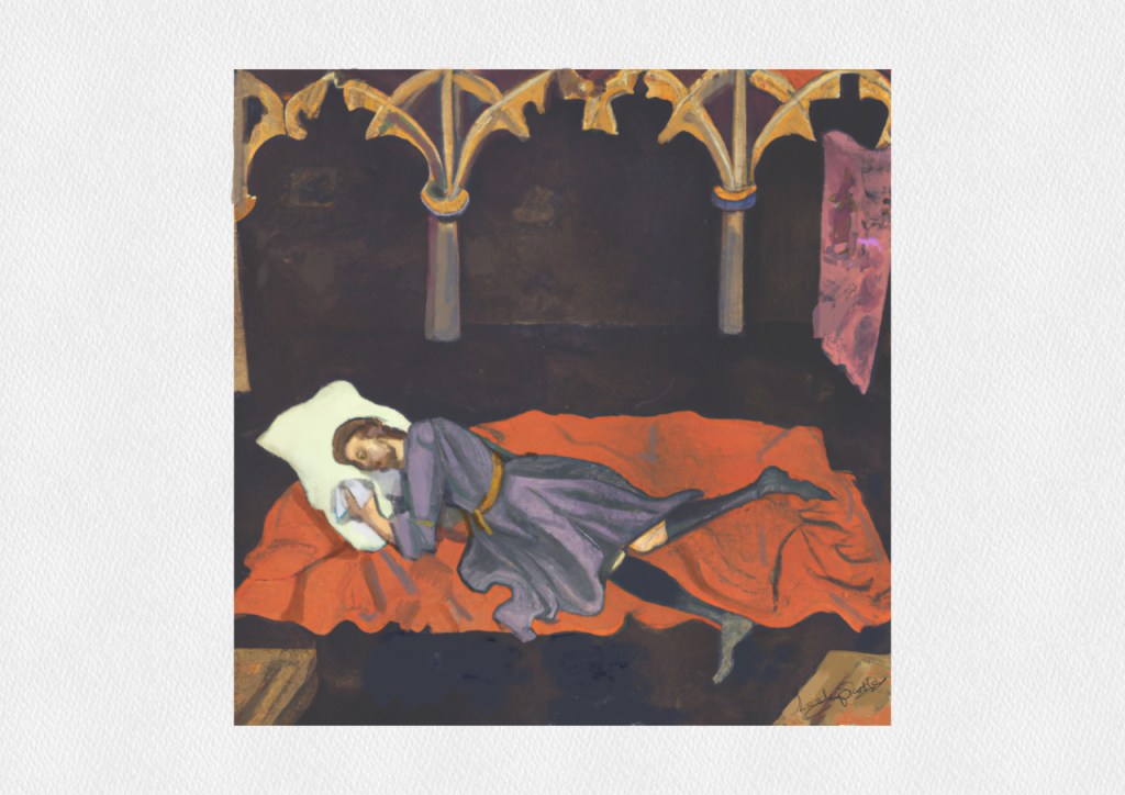 I lay down my crown and dream of sleep.