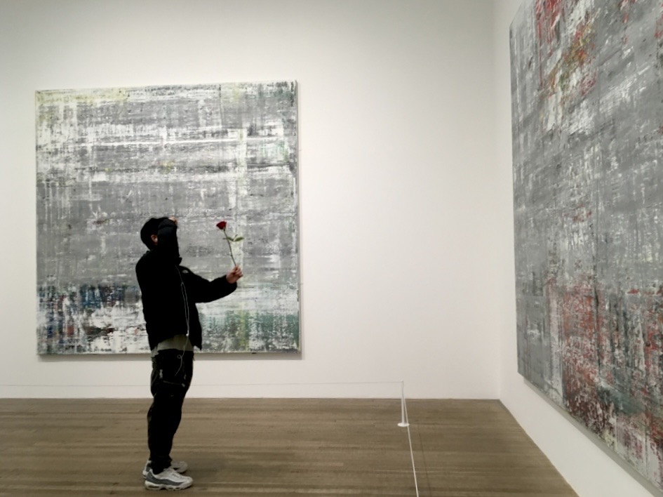 Here is a real Gerhard Richter at the Tate Modern, London. With an admirer offering the work a rose. Appropriate for a wedding, don’t you think?