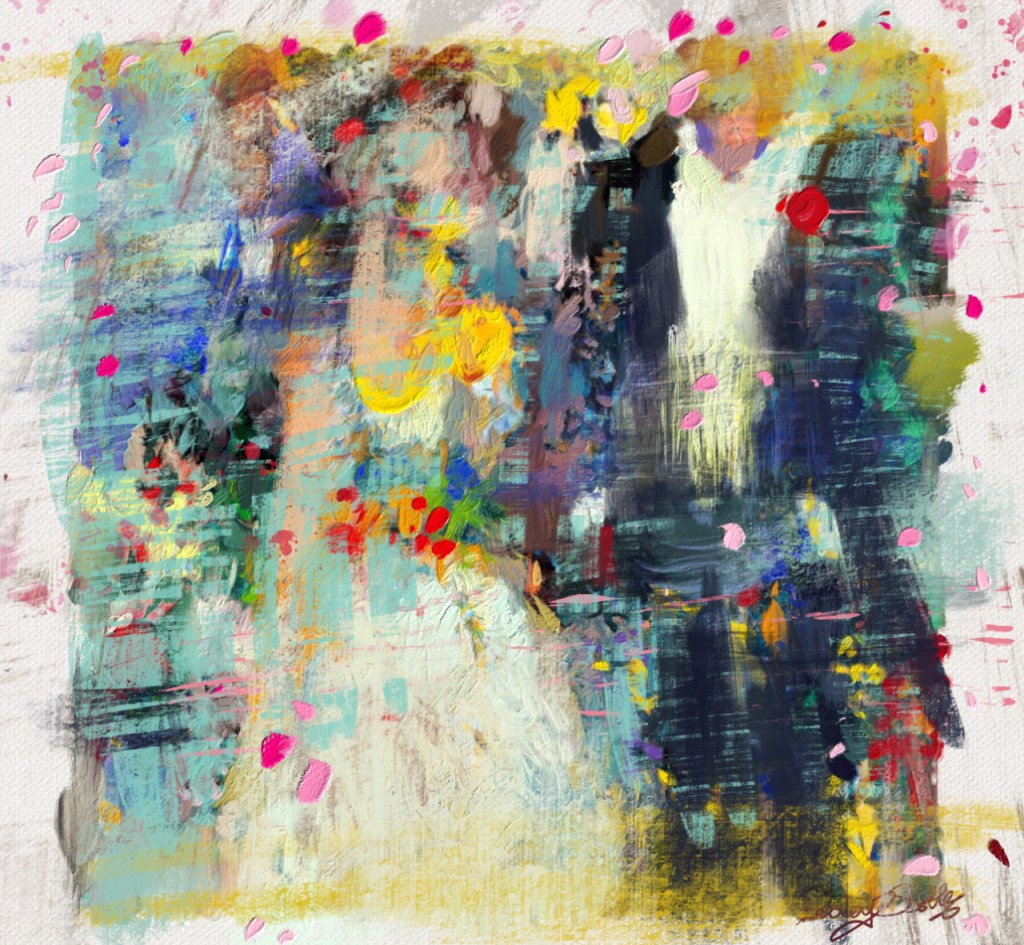 NOTES If you know the work of the German abstract artist Gerhard Richter (a German artist for a German poetry form!) you may notice I’m having a touch of the Richters! I am trying to achieve a hint of his style in my illustration, painting. (Lol. No chance!—it needs a lot more scraping and abstraction). I love his work. Who knows, one day I may paint an enormous abstract canvas just like he does! Never stop dreaming, is my motto.