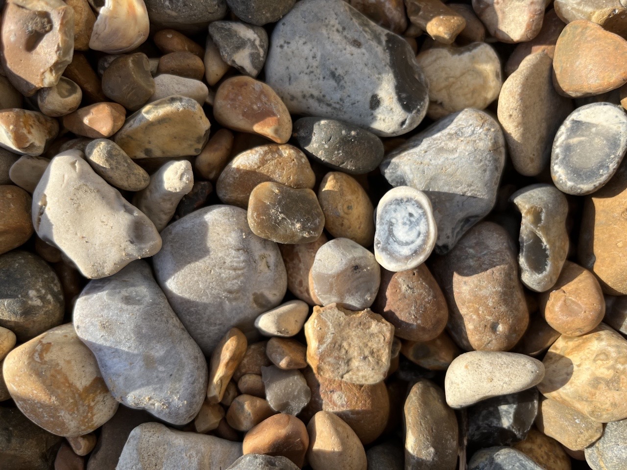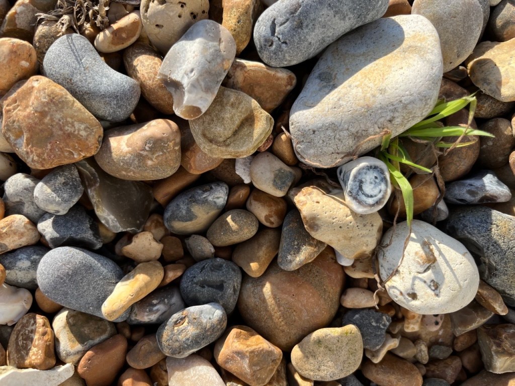 The happy stone smiles unseen, alone and yet not faceless stones are everywhere, tons are on the beach where sun shines and glints oblique, over all of them The stone is content to be; alone in a crowd Lesley Scoble, July 2023