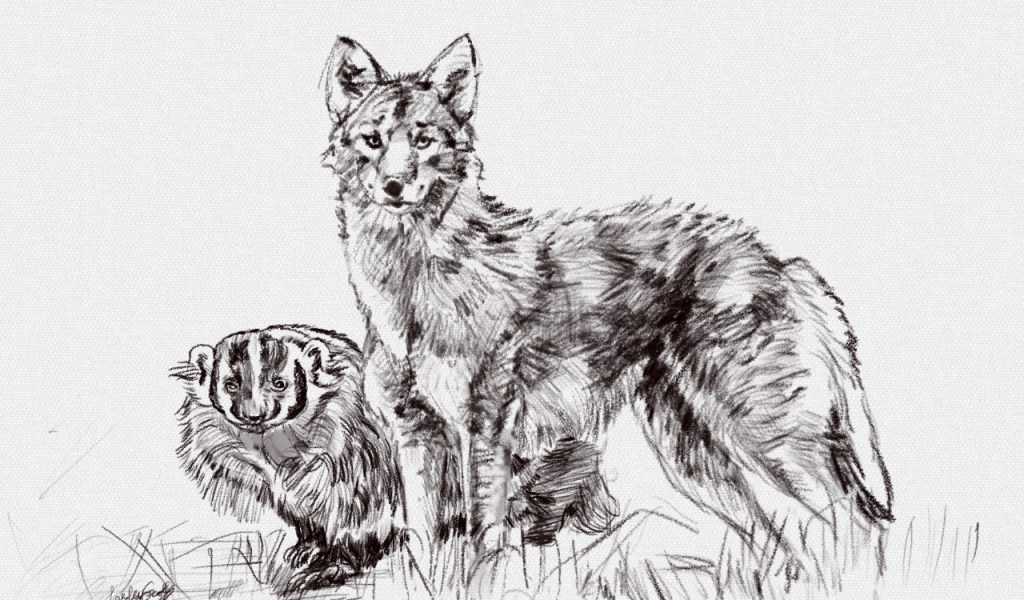 Timelapse video (20 secs) of my digital pencil sketch of coyote and badger