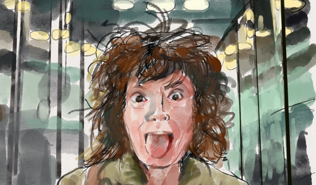 I stick out my tongue and grimace | Digital ink and watercolour©️Lesley Scoble