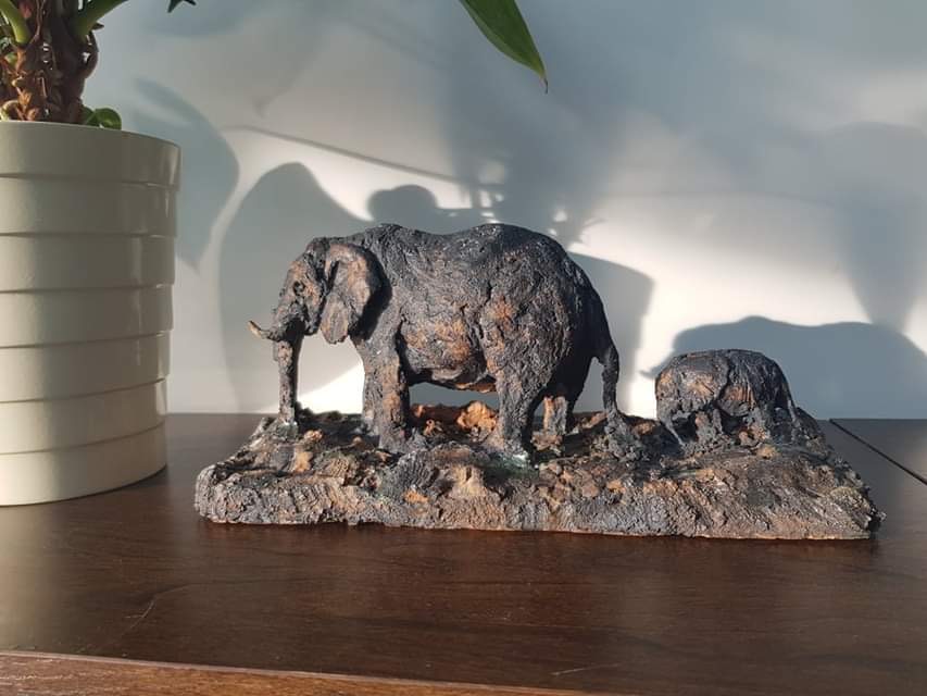 The ‘Mother and Baby Elephants’ are sold. They have found a happy home. And these two photographs (kindly supplied by their new owner) show them in their new habitat.