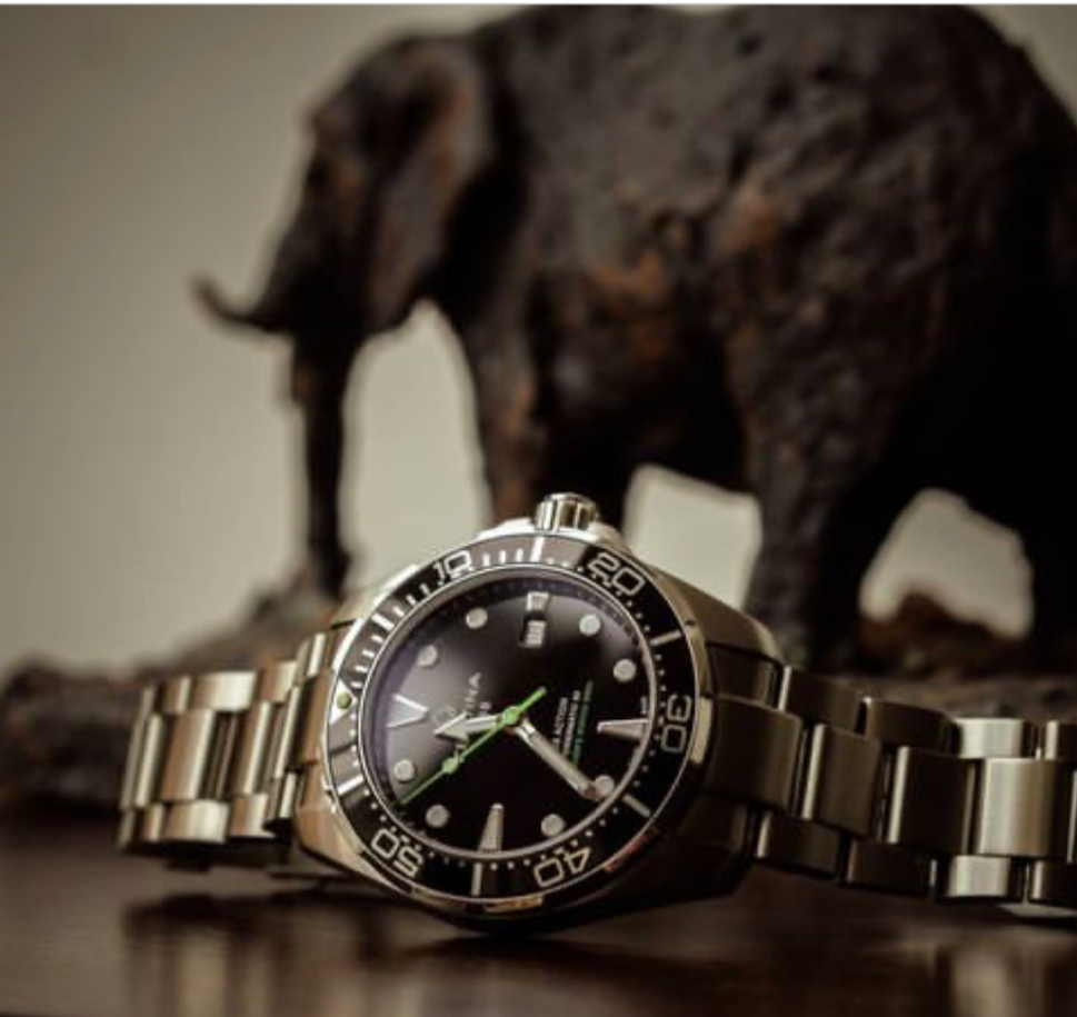 My Mother elephant (baby not visible) ceramic sculpture ceramic is now a fashion model! Here she is in the background of an advert for the Certina DS Action Diver Watch. Visit Sir Watch Geek here
