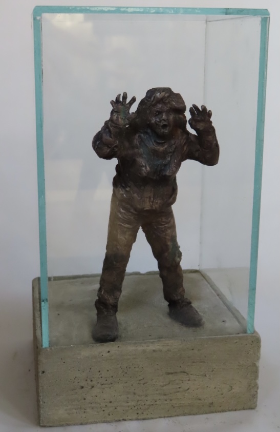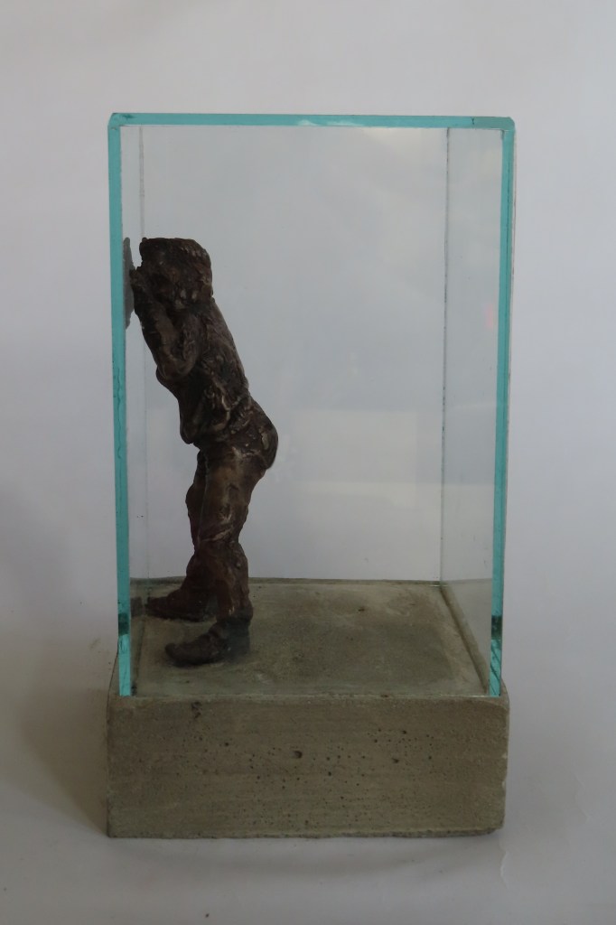 Maquette Sculpture: Self-portrait Bronze Resin Figure encased in glass on a concrete base. Dimensions W 11 cm H 19.5 cm D 11 cm